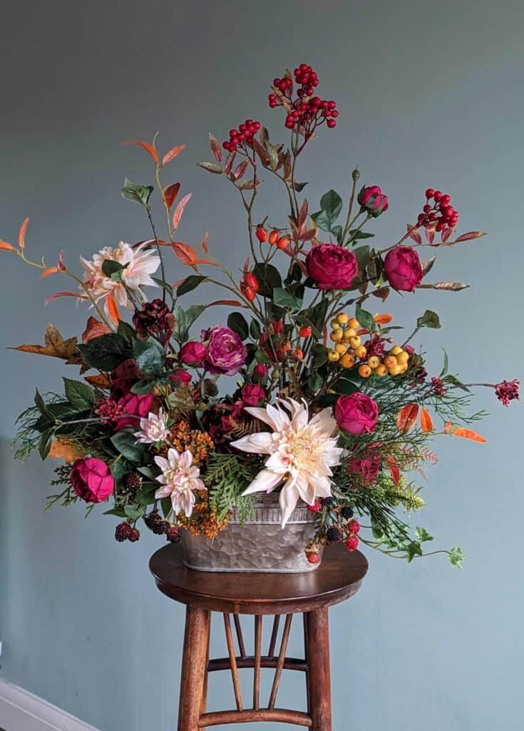 ‘Mellow and fruitful’ arrangements with dazzling dahlias, faded blooms and beautiful berries and seedheadsView Collection